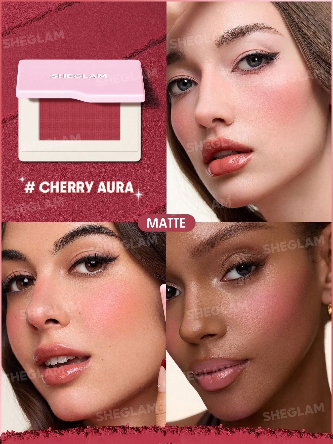 1) رژگونه شیگلم مدل Dream Touch رنگ Cherry Aura برای پوست روشن زیاد پررنگ نمیشود؟